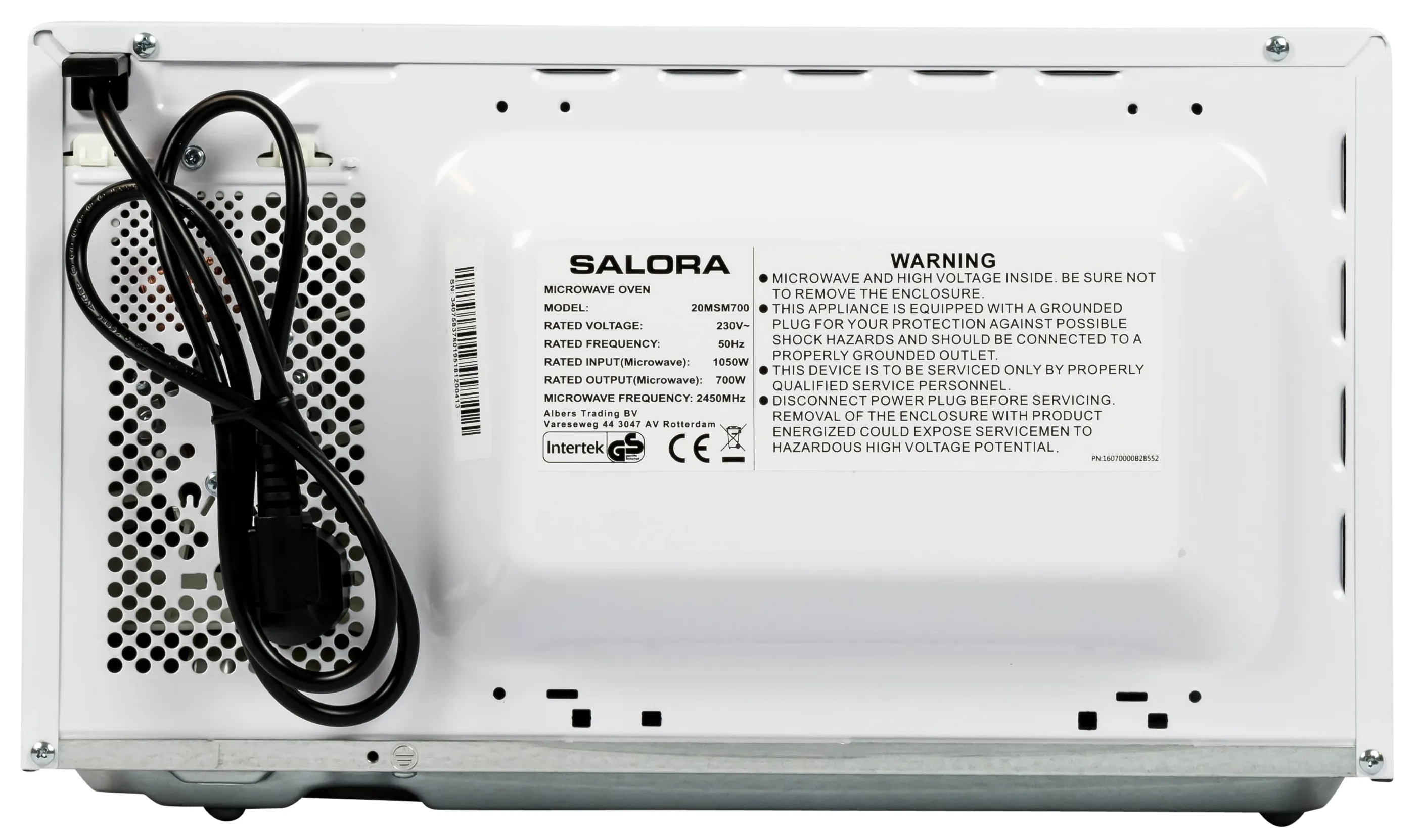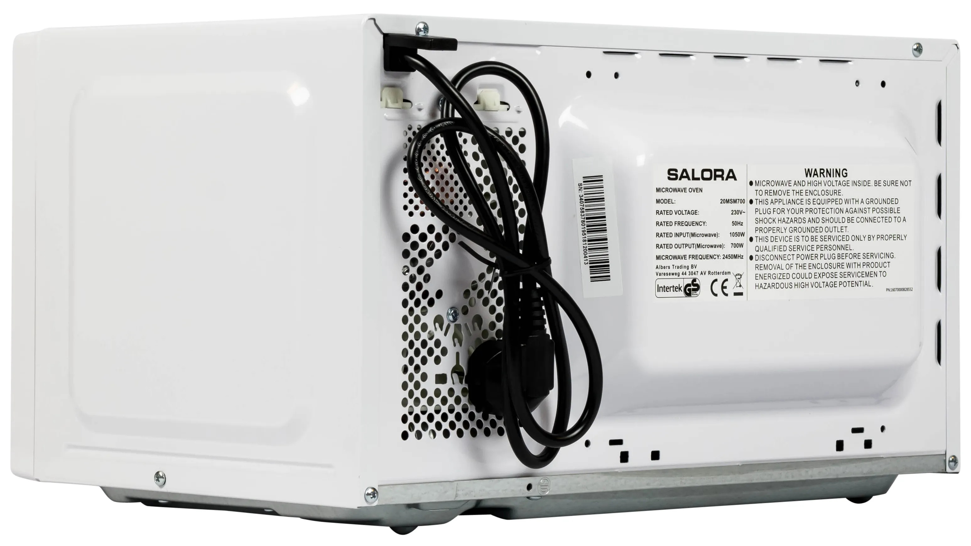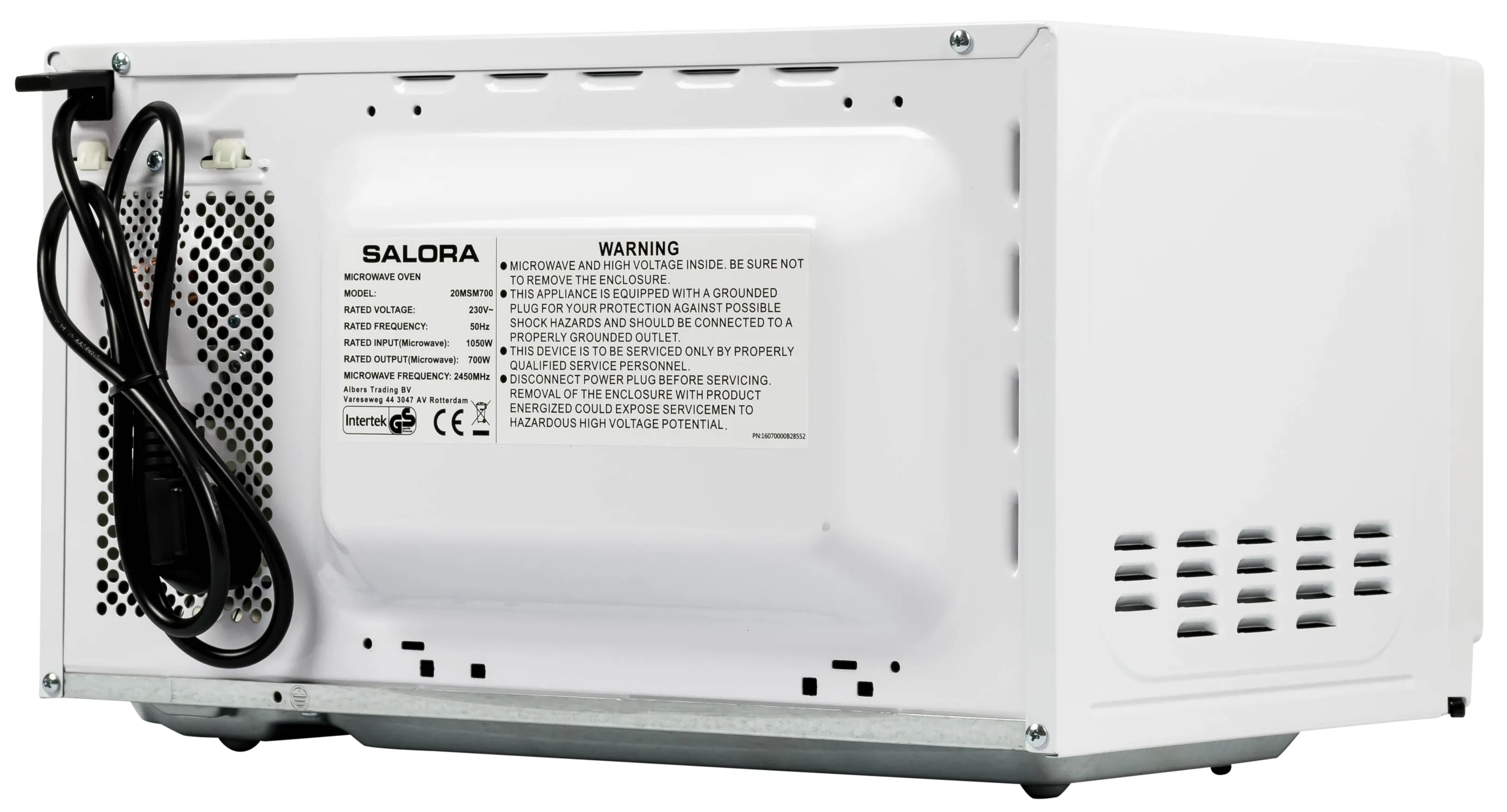 De Salora 20MSM700 is een wit uitgevoerde vrijstaande magnetron, met 5 standen en heeft een strak design. De magnetron heeft een inhoud van 20 liter en heeft een ontdooifunctie met gewicht en tijd.