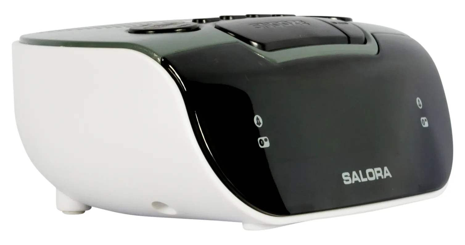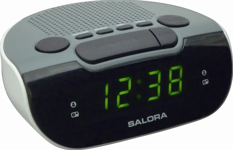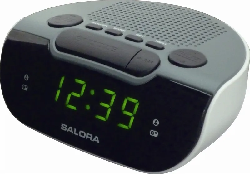 Digitale AM/FM (PLL) klokradio met wekker en voorzien van dubbele wektijd. Beschikt over een batterij back-up, altijd handig bij een eventuele stroomuitval. Verder een snooze- en slaapfunctie en uitgevoerd met groene LED display.
