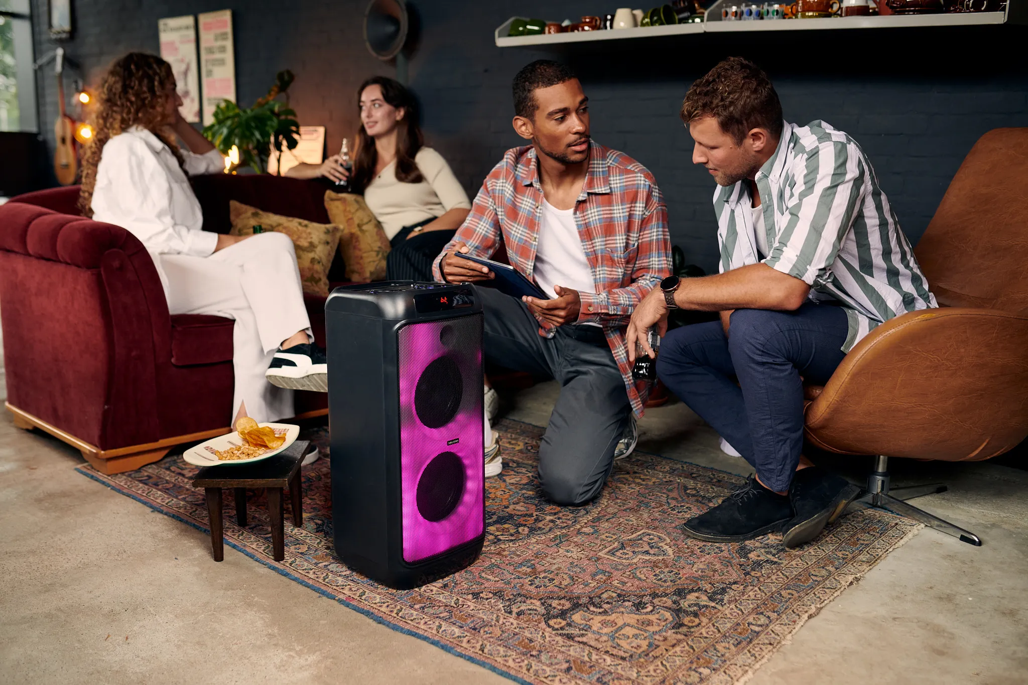 De PartySpeaker L1 is een groot formaat party speaker met 400 watt vermogen en geeft een ware licht show met de full color led front. De party speaker beschikt over een meegeleverde microfoon, hiermee creëer je jouw eigen karaoke avond. Muziek speel je af via Bluetooth, AUX of via een USB stick. De krachtige interne accu geeft je uren luisterplezier.