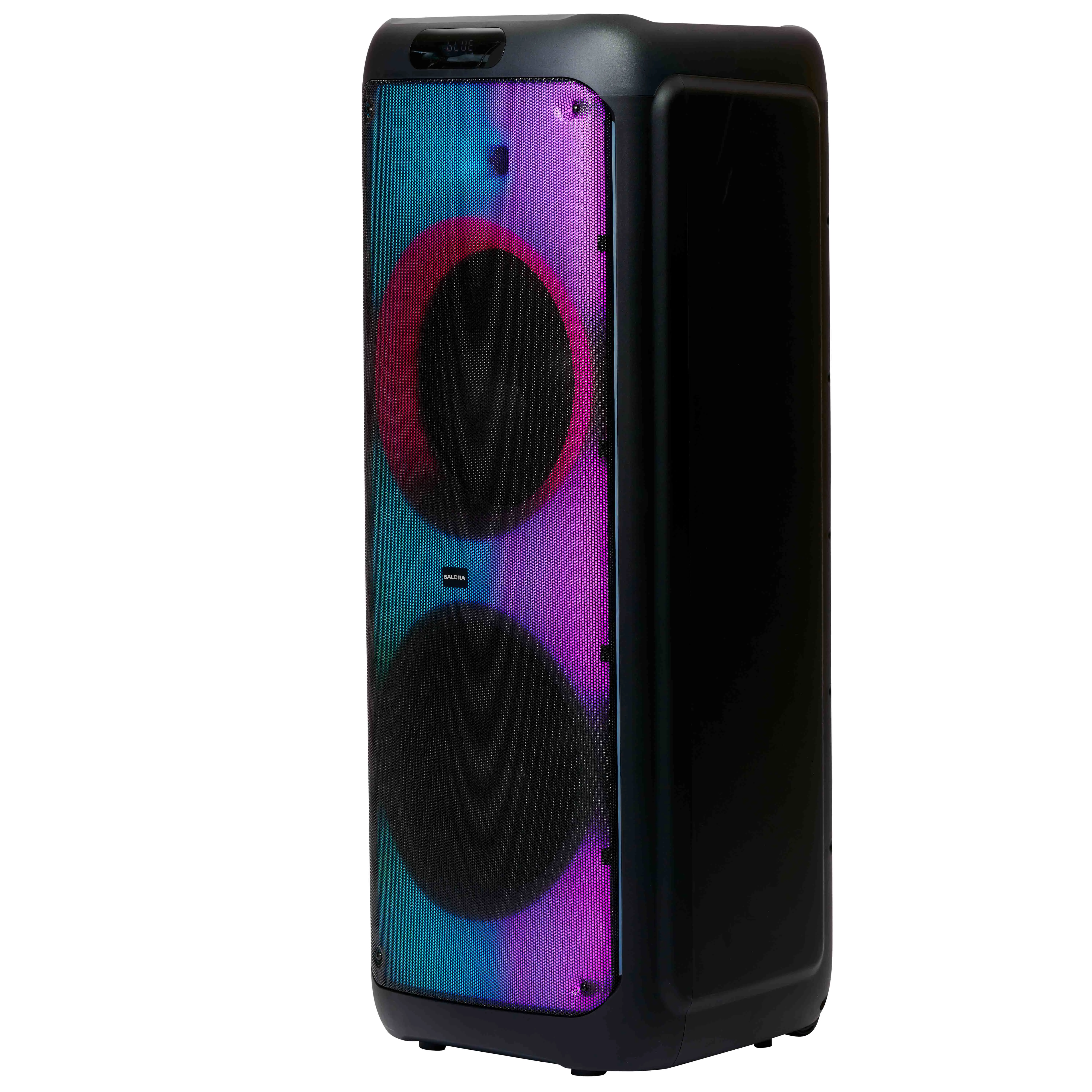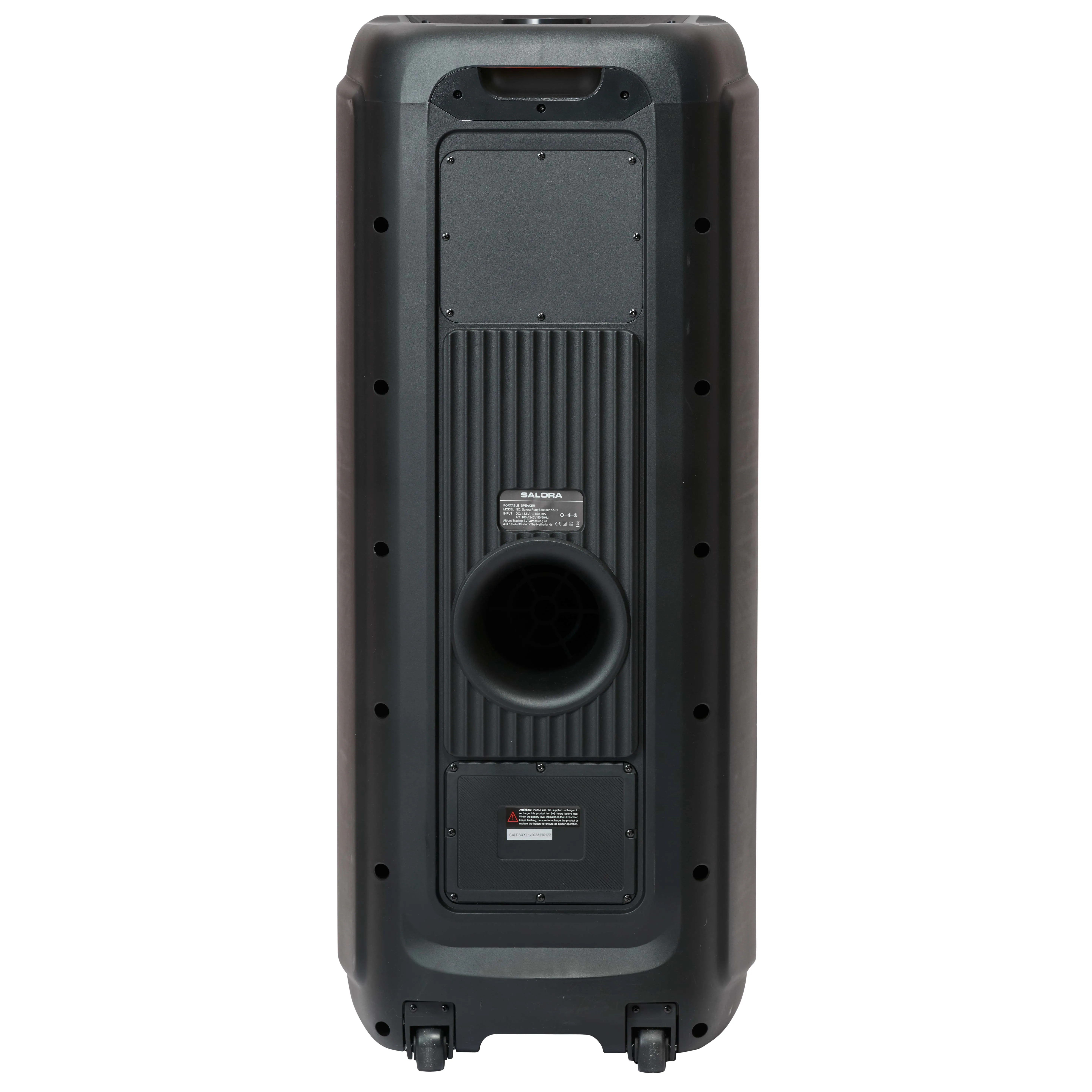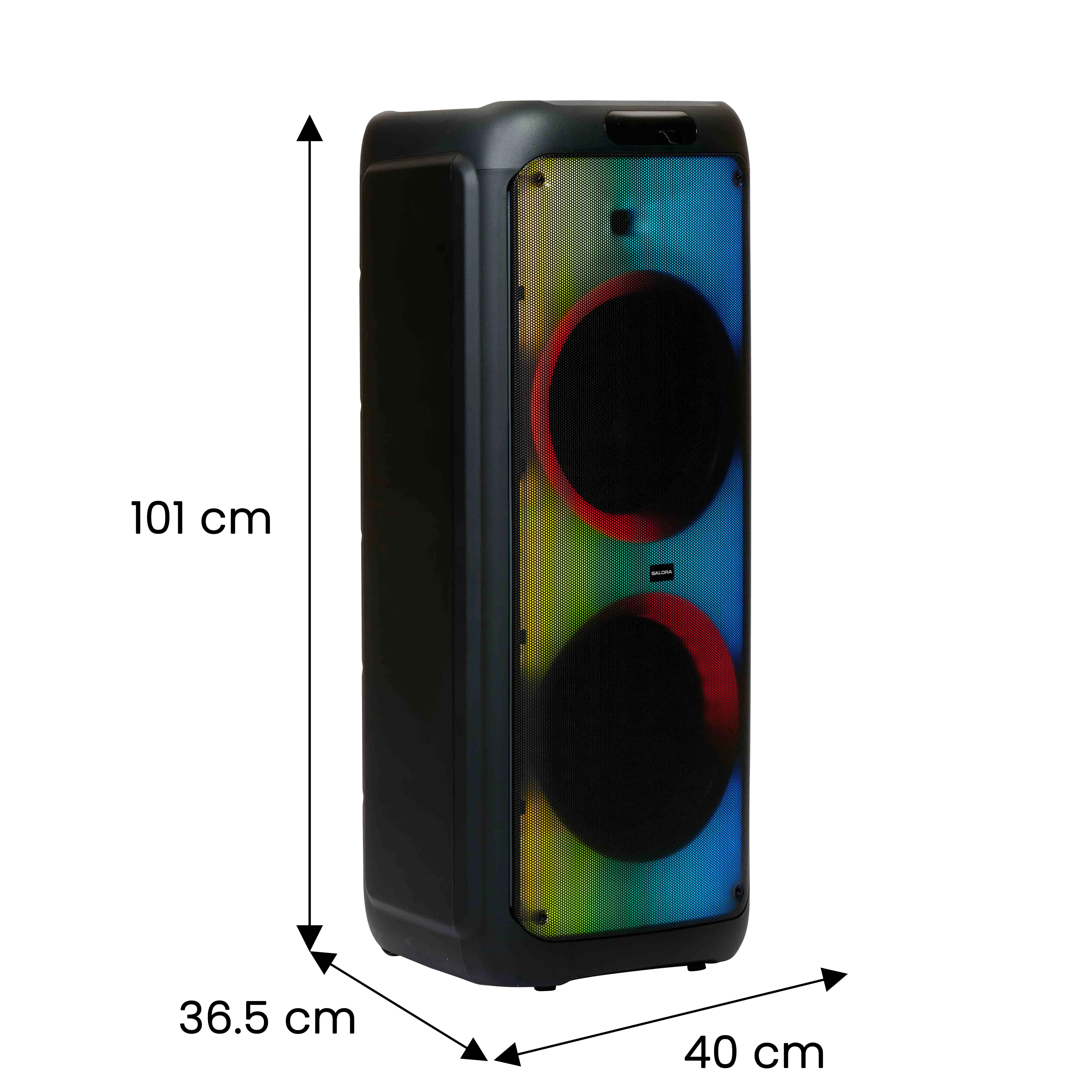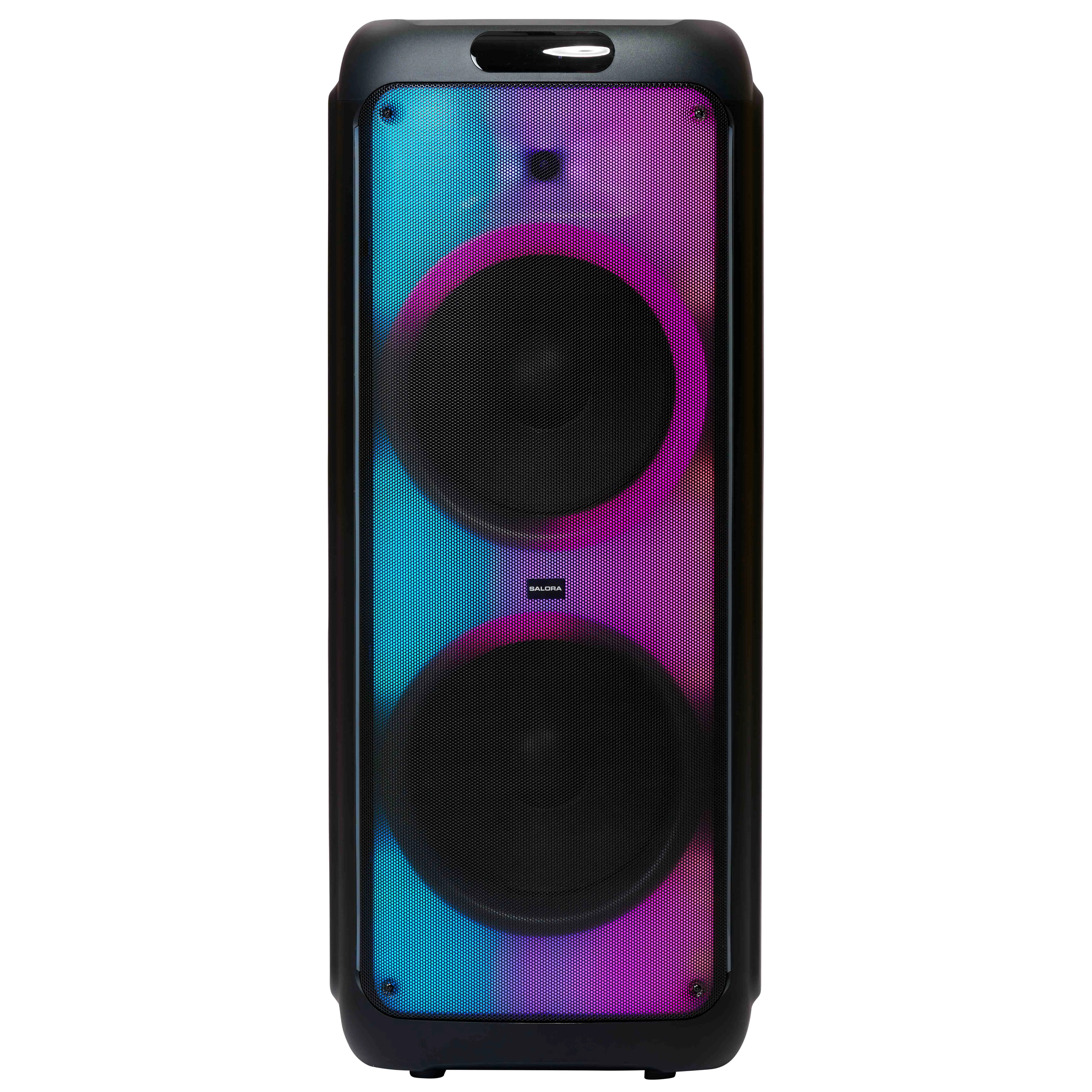 Creëer jouw feestje met de Salora PartySpeaker XXL1. Deze Bluetooth party speaker beschikt over 2x 12’’ speakers met een vermogen van 1200 watt. Met de 8000 mah accu is deze speaker ook draadloos te gebruiken en heb je ruim 5 uur luister plezier. Je kan gebruik maken van 2 microfoon ingangen en